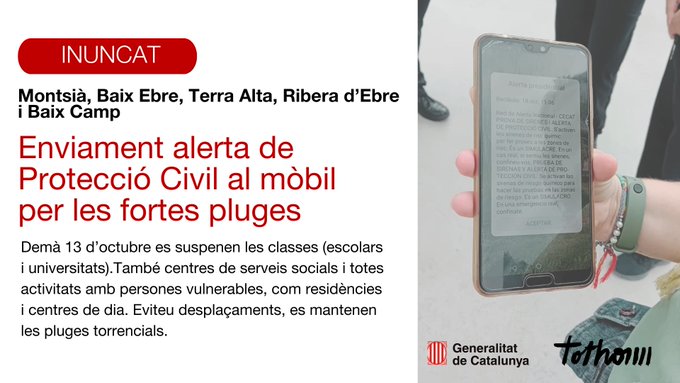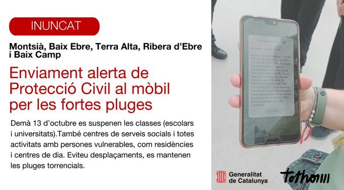Enviament d’EsAlert a les comarques del Montsià, Baix Ebre, Ribera d’Ebre, Terra Alta i Baix Camp