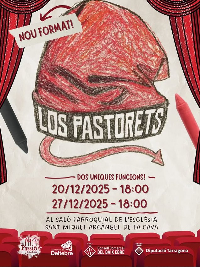Los Pastorets tornen un any més a Deltebre per omplir de teatre i esperit nadalenc el Saló Parroquial de l’Església Sant Miquel de La Cava. Enguany, però, l’Associació de la Passió de La Cava presenta una edició especial que aposta per la renovació i el relleu generacional. Les representacions tindran lloc els dissabtes 20 i 27 de desembre a les 18.00 h, amb entrades a un preu simbòlic de 5 euros i la participació en un sorteig d’un lot de Nadal.