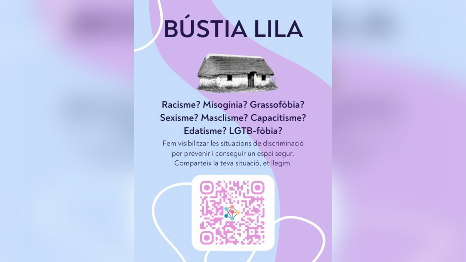 La Bústia Lila és un espai anònim pensat per compartir situacions de discriminació, malestar o incomoditat, com comentaris racistes, actituds masclistes, LGTB-fòbia, grassofòbia, capacitisme, burles o qualsevol altra situació que afecti el benestar dels joves.