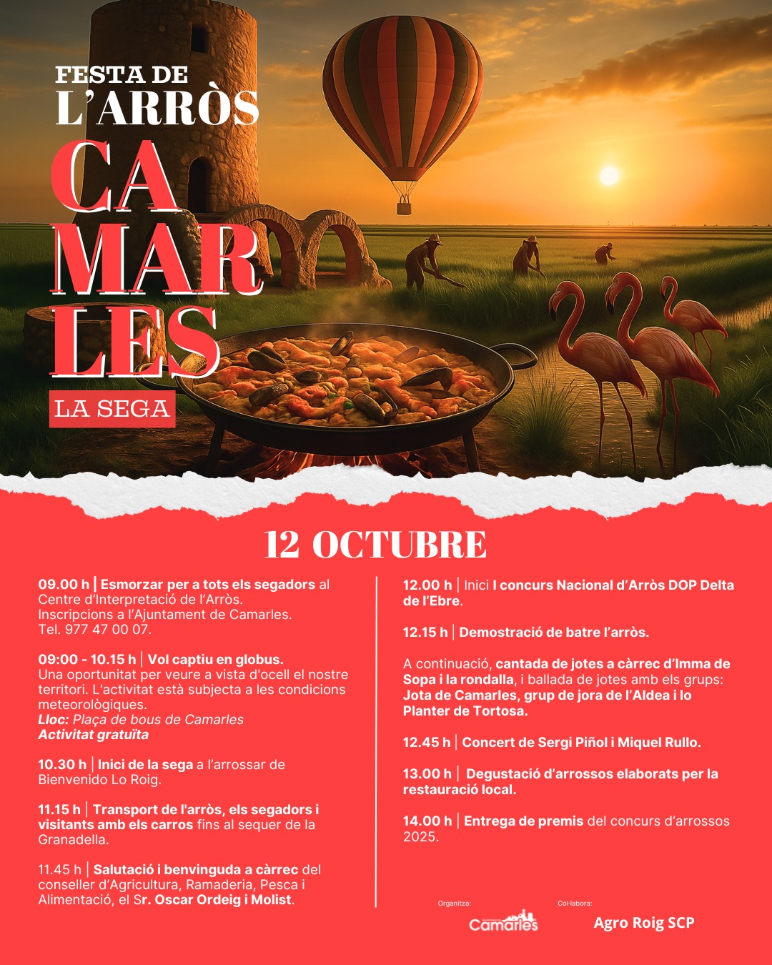 Viu la tradició de la sega de l’arròs amb una jornada plena d’activitats, música i bona gastronomia. El diumenge, 12 d'octubre a Camarles.