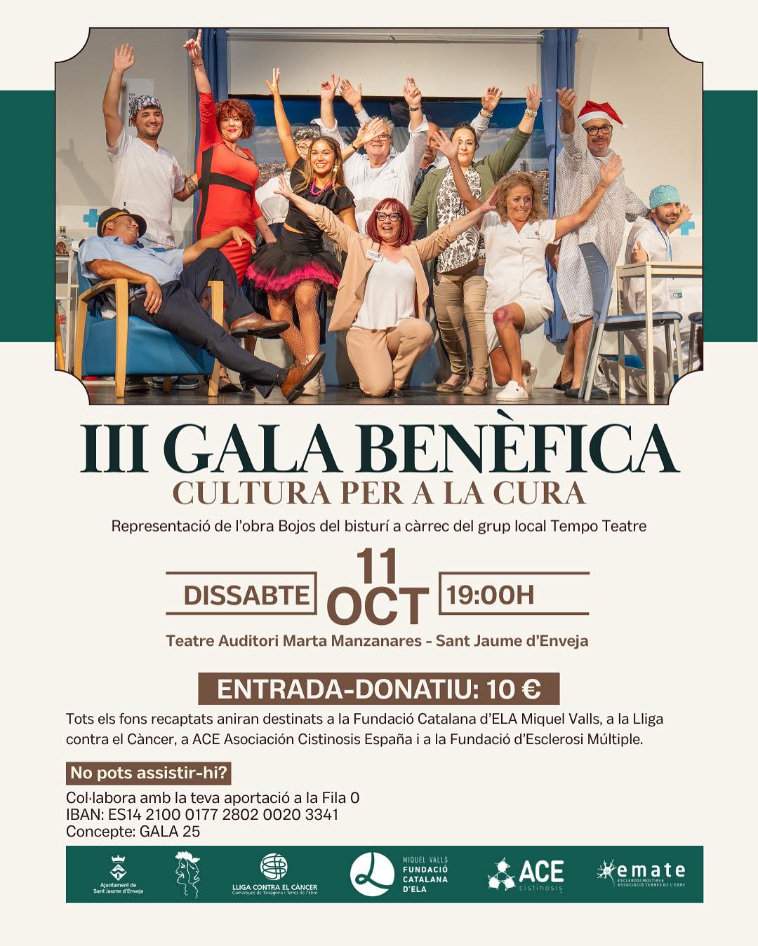 El dissabte, 11 d’octubre a les 19 h el Teatre Auditori Marta Manzanares de Sant Jaume d’Enveja acollirà la III Gala Benèfica Cultura per a la cura. Els beneficis aniran destinats a la Fundació Catalana d’ELA Miquel Valls, a la Lliga contra el Càncer, a ACE Cistinosis i a la Fundació d’Esclerosi Múltiple.Venda d’entrades: divendres, 10 […]