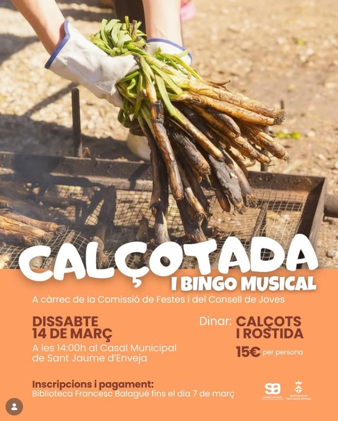 El dissabte, 14 de març a les 14.00 h al Casal municipal, Sant Jaume d’Enveja. Preu: 15 €/persona. Inscripcions i pagament fins al dia 7 de març a la Biblioteca Francesc Balagué. Organitza: Comissió de Festes i Consell de Joves.