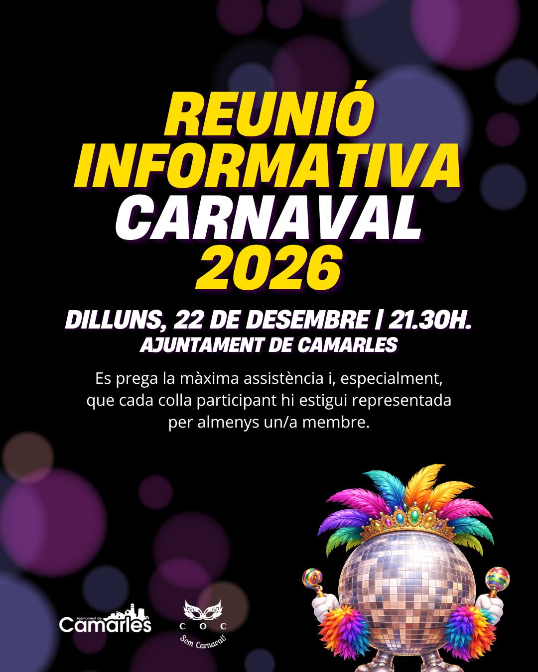 Es comunica que el dilluns, 22 de desembre, a les 21.30 hores, tindrà lloc a l’Ajuntament de Camarles una reunió informativa sobre el Carnaval 2026.Durant la sessió es presentarà la […]