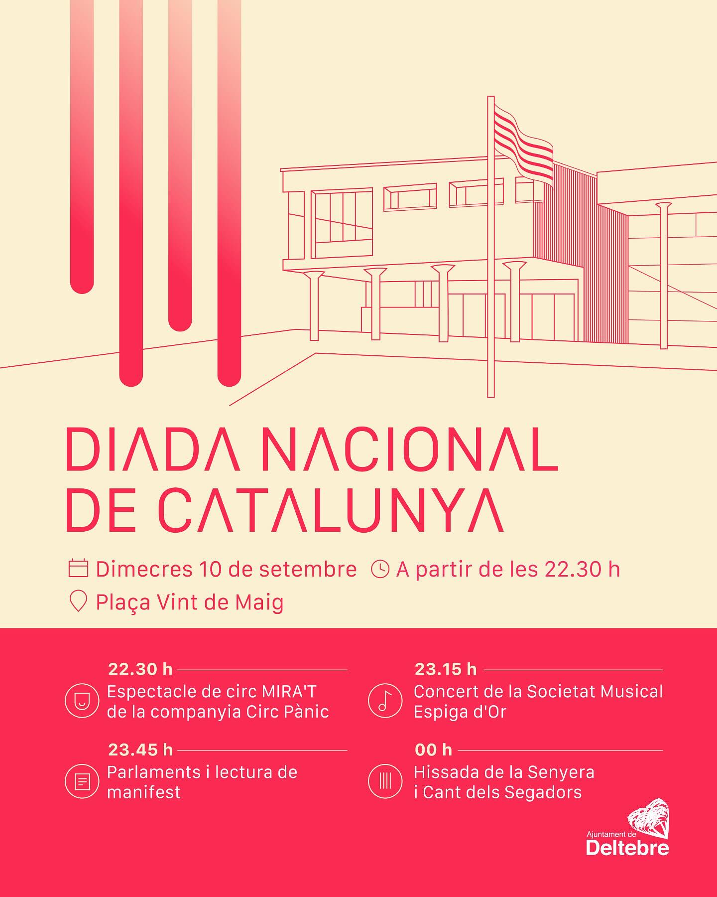 A la Plaça Vint de Maig, el 10 de setembre se celebrarà la Diada Nacional de Catalunya al municipi de Deltebre. A les 22.30 h es podrà gaudir de l'espectacle de circ "Mira’t" de la companyia Circ Pànic. A les 23.15 h es durà a terme el concert de la Societat Musical Espiga d’Or. A […]