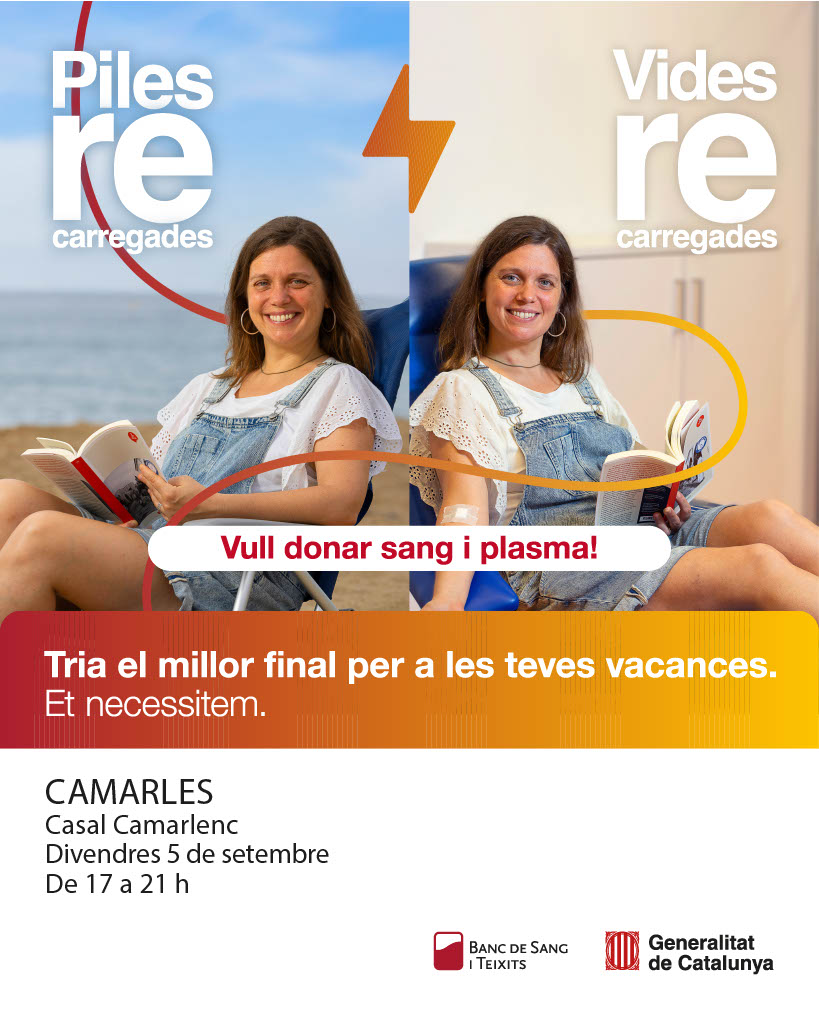Este divendres 5 de setembre, de 17 a 21 h, participa en la campanya de donació de sang i plasma al Casal Camarlenc. La teva donació pot salvar vides!
