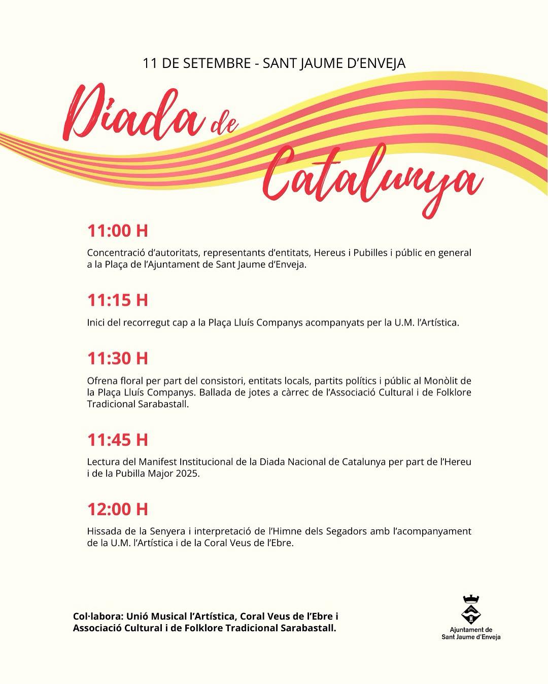 Acte institucional en commemoració a la Diada de Catalunya a Sant Jaume d'Enveja. El dijous, 11 de setembre a partir de les 11.00 h.