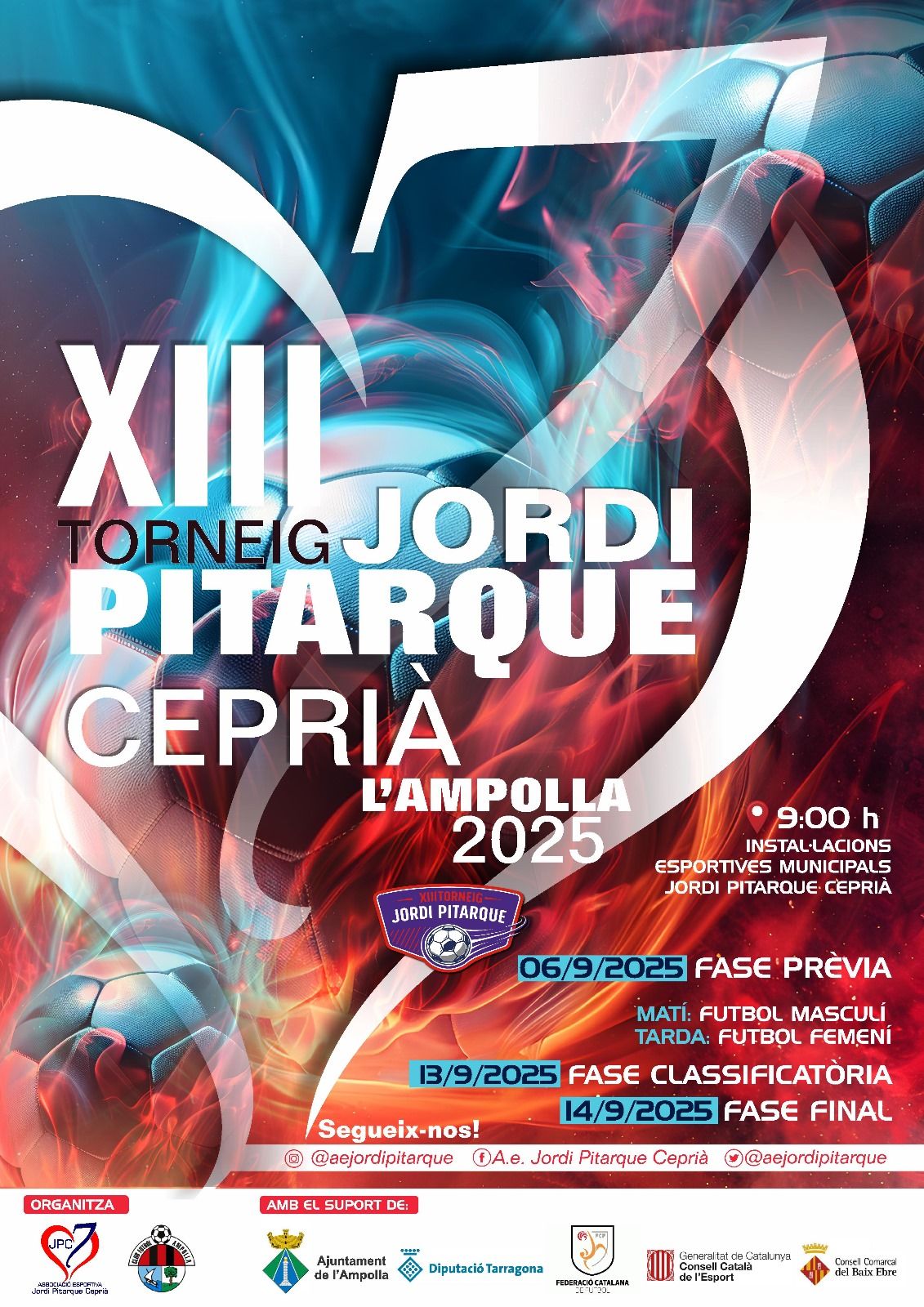 El pròxim dia 6 de setembre es disputarà la fase prèvia del XIII Torneig Jordi Pitarque Ceprià. Al matí tindrà lloc la competició de futbol masculí i a la tarda la de futbol femení. A partir de les 9 h del matí a les instal·lacions esportives municipals Jordi Pitarque Ceprià. La fase classificatòria es jugarà […]