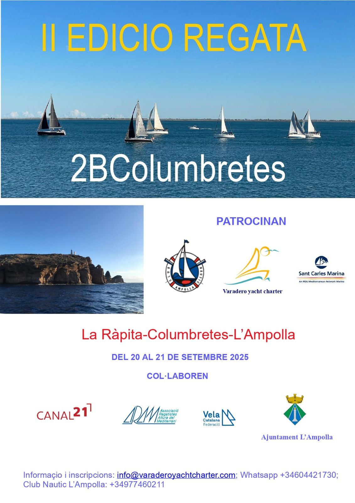 Del 20 al 21 de setembre tindrà lloc la II Edició de la Regata 2B Columbretes, amb recorregut entre La Ràpita – Columbretes – L’Ampolla. Una cita imprescindible per als amants de la vela i la competició nàutica, en un entorn natural privilegiat.Informació i inscripcions a info@varaderoyachtcharter.com, al WhatsApp +34 604 42 17 30 o […]