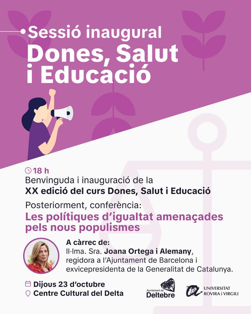 Comencem la XX edició del curs Dones, Salut i Educació! Aquest dijous 23 d’octubre, a les 18 h al Centre Cultural del Delta, celebrarem la sessió inaugural amb la participació, entre altres, del rector de la Universitat Rovira i Virgili, Dr. Josep Pallarès. Posteriorment, es durà a terme la conferència Les polítiques d’igualtat amenaçades pels […]