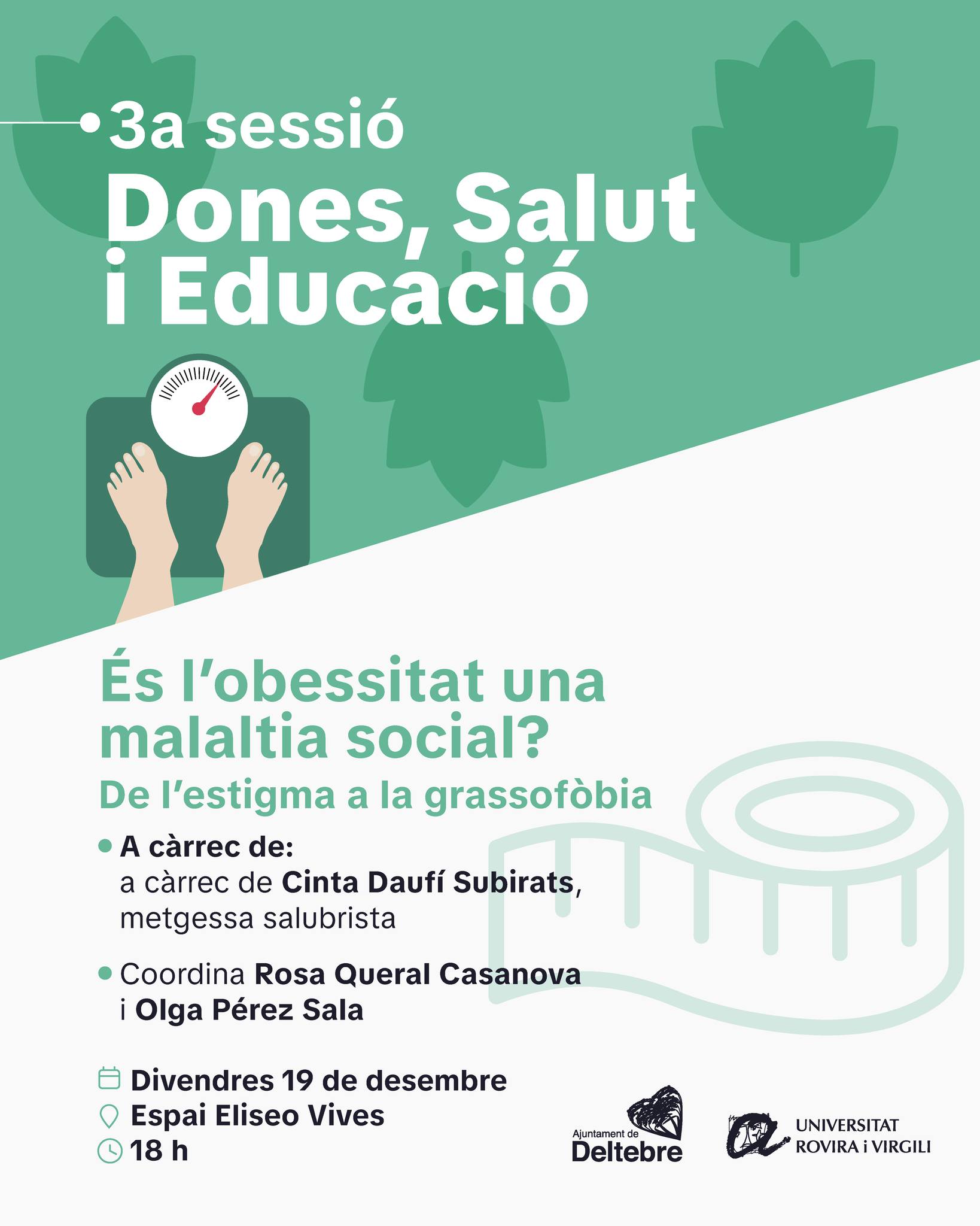 🟢 Nova sessió del curs Dones, Salut i Educació. Una sessió de reflexió i debat al voltant de la salut i la societat amb la xerrada És l’obesitat una malaltia social? De l’estigma a la grassofòbia.