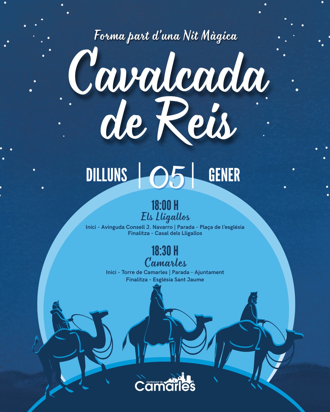 El pròxim dilluns 5 de gener, Ses Majestats els Reis d’Orient arribaran a Camarles i Els Lligallos per omplir carrers d’il·lusió, llum i màgia.