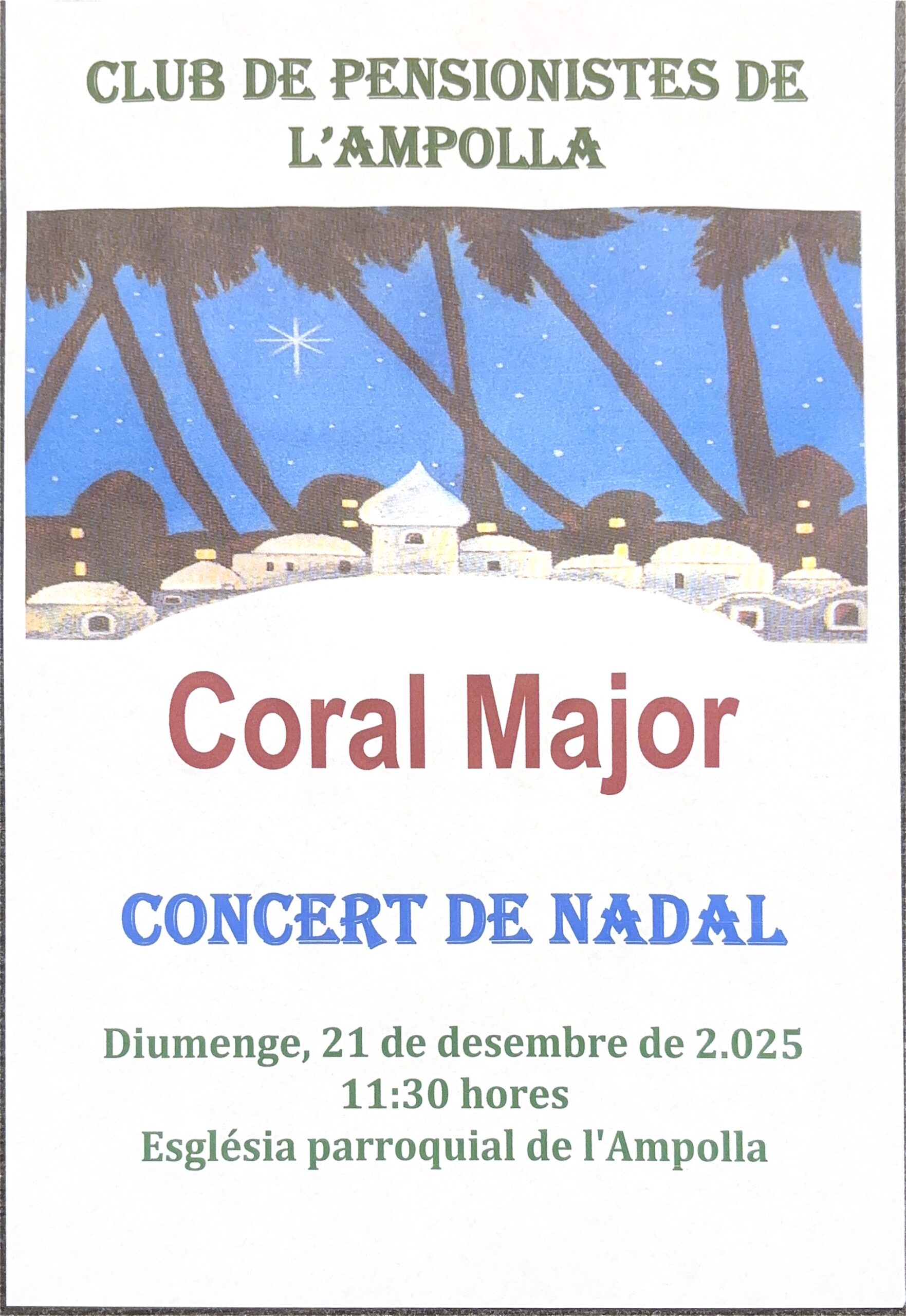 Concert de Nadal de la Coral Major, organitza el Club de Pensionistes de l’Ampolla. El diumenge 21 de desembre a les 11:30 h a l’Església Parroquial de l’Ampolla.