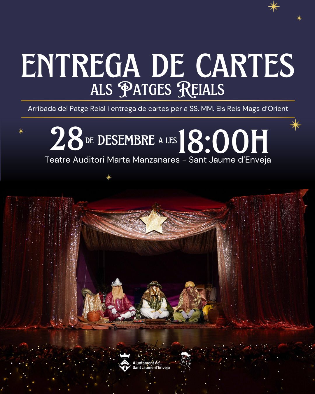 El proper 28 de desembre, els Patges Reials arribaran a Sant Jaume d’Enveja per recollir totes les cartes dels xiquets i xiquetes per fer-les arribar directament a Ses Majestats els Reis Mags d’Orient.