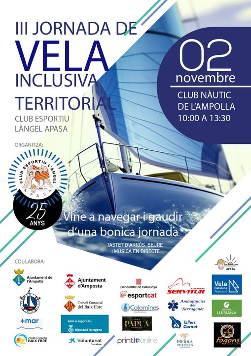 Nova data per a la celebració de la III Jornada de Vela Inclusiva Territorial a l’Ampolla, organitzada pel Club esportiu L’Àngel Apasa.