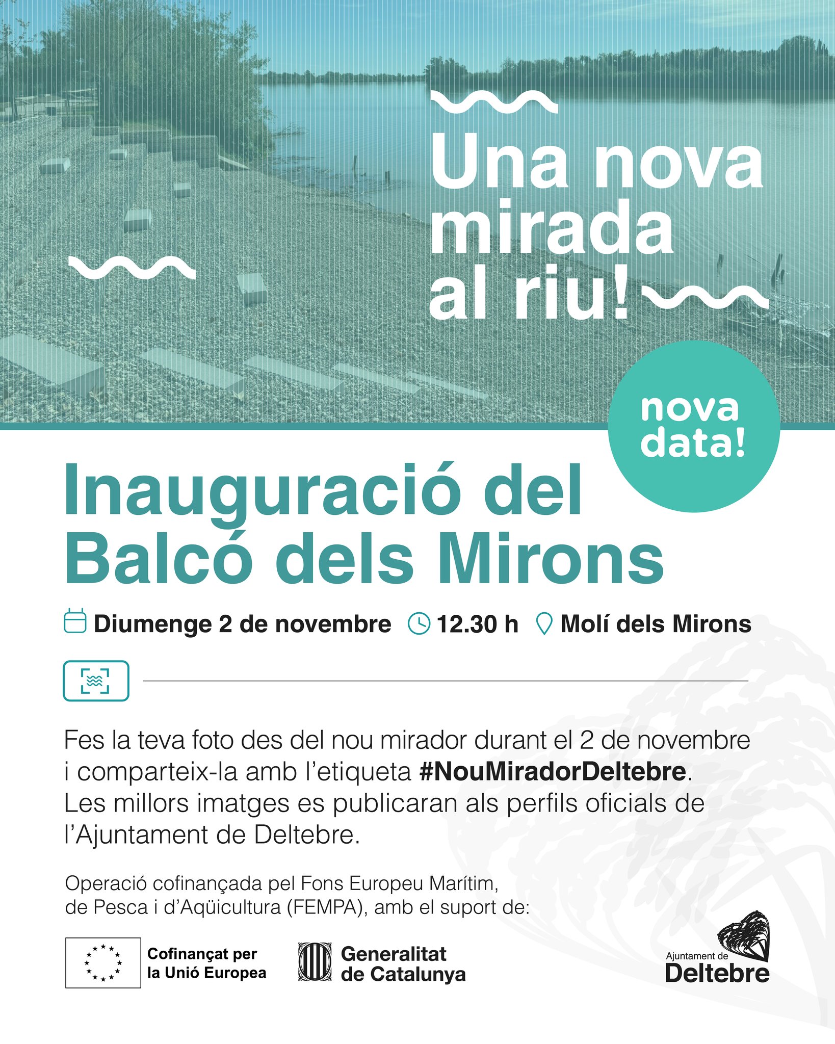Fes la teva foto durant la jornada i comparteix-la amb l’etiqueta #NouMiradorDeltebre. Les millors imatges es publicaran als perfils oficials de l’Ajuntament!