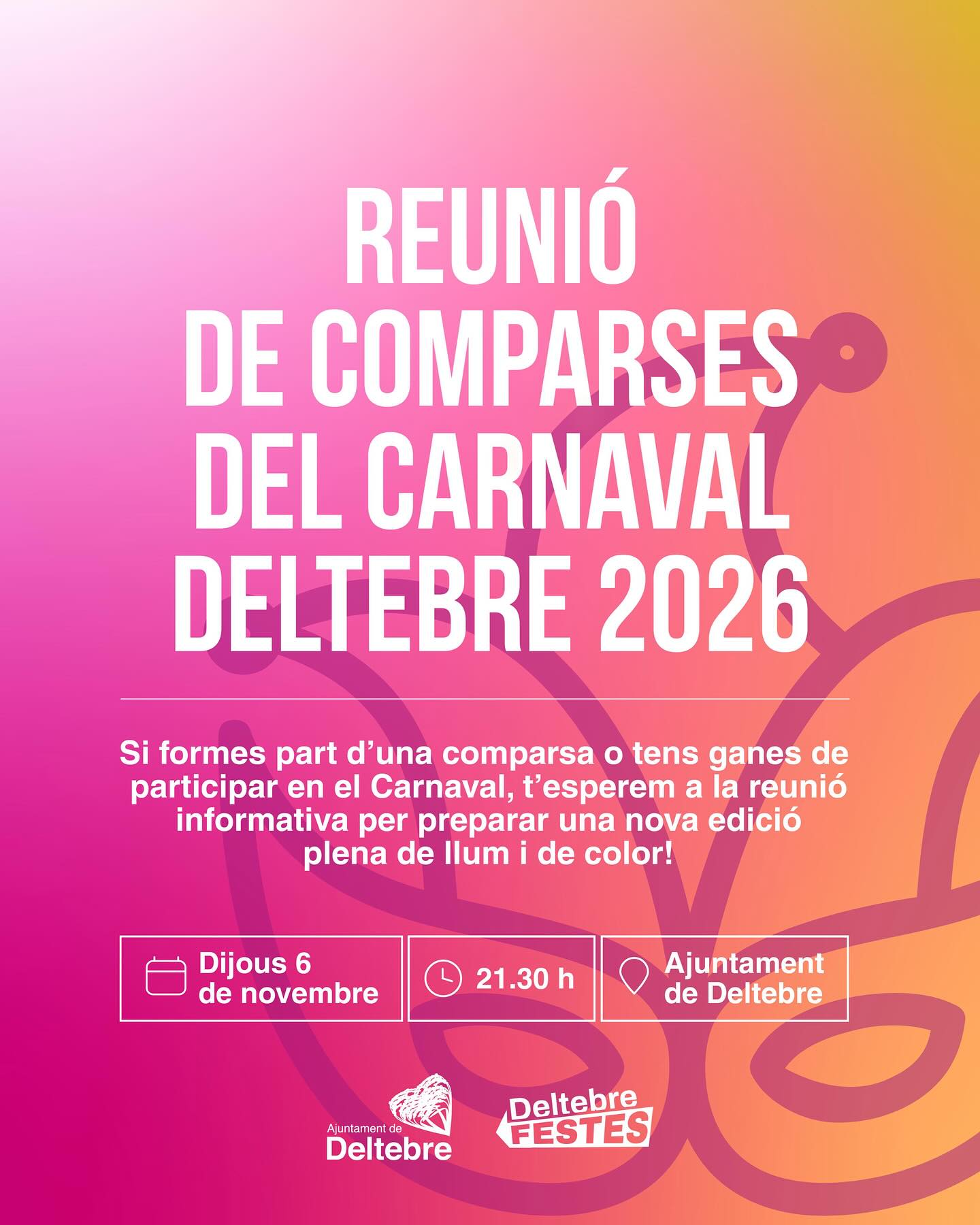 Si formes part d’una comparsa o tens ganes de participar al Carnaval 2026, t’esperem a la reunió informativa per preparar plegats una nova edició plena de color, música i diversió!